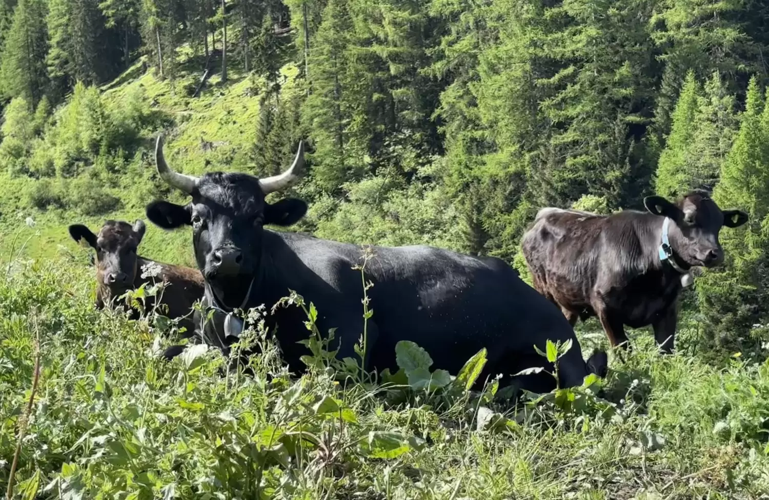 Bei uns leben Rinder und Hühner im Einklang mit der umliegenden Natur. Unsere Tiere grasen und picken auf artenreichen Weiden, profitieren vom alpinen Klima und tragen zur Pflege und Vielfalt der Umgebung bei. Wir legen Wert auf tiergerechte Haltung mit viel Freiraum, ohne Stress und Stossbetrieb – weil nur dann echte Qualität und Lebendigkeit entsteht.